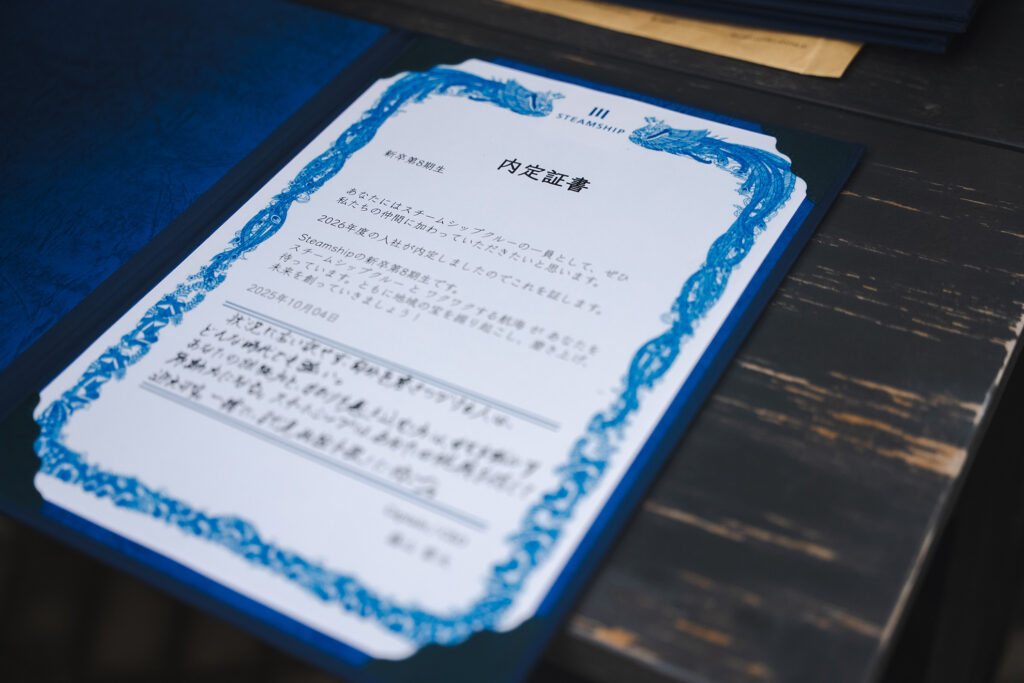 内定式という大事な日で、新卒など若手クルーにチャレンジさせてくれるのがスチームシップならではのカルチャーだなと感じます。