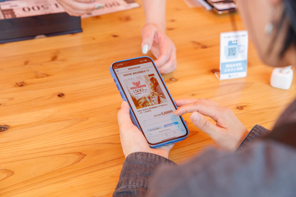 店頭のポスターやPOPに印字した専用の二次元コードをスマホで読み込むだけで、寄附したい自治体へのふるさと納税が完了。スマホに表示されるデジタルクーポンをお店に提示することで、お礼の品(返礼品)をすぐに受け取ることができます。