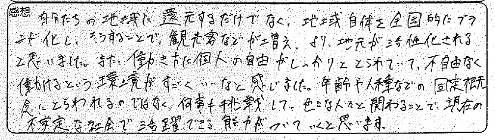 私たちのコンセプトである『地域の宝探しカンパニー』の意味や背景を深く理解してくださったようで、とても嬉しいです。