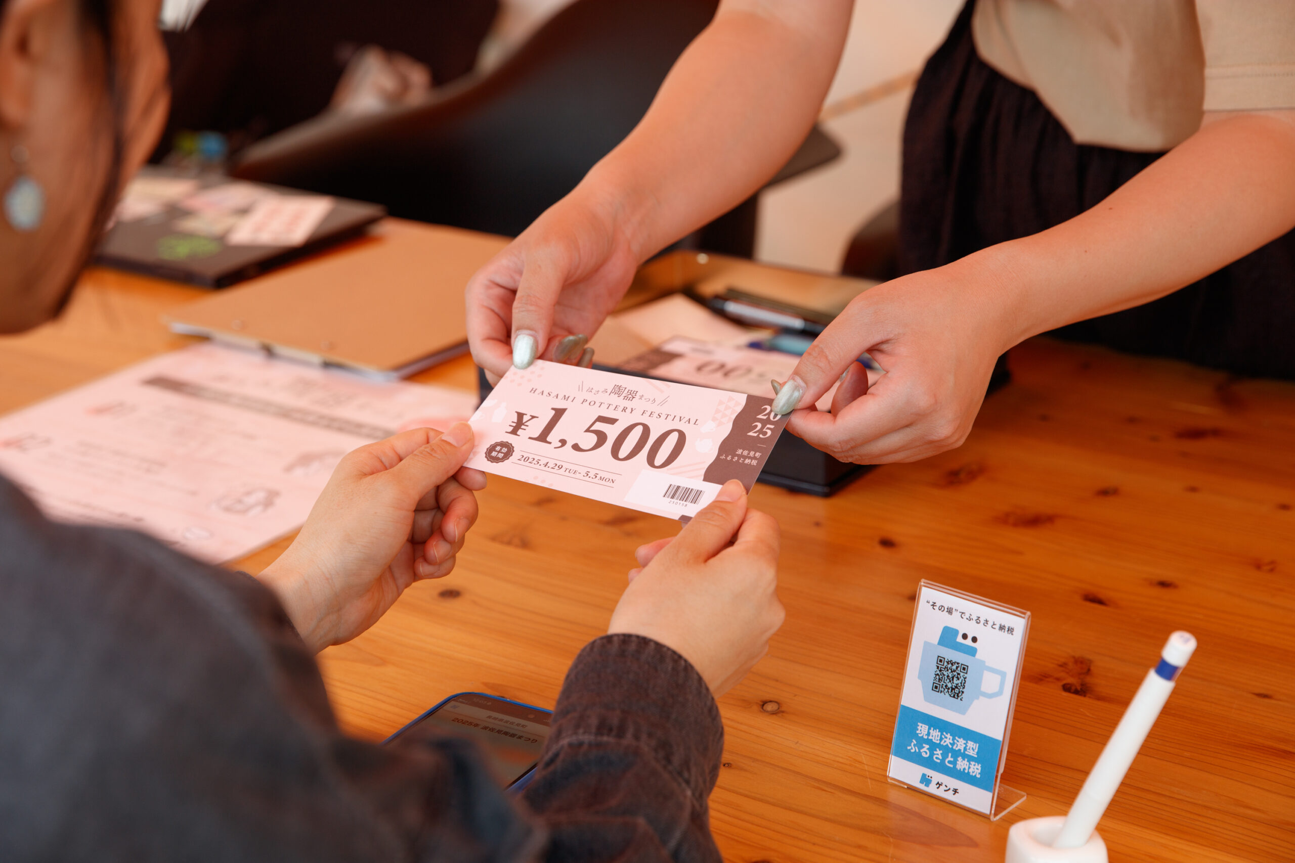 実はこのブース、なんとその場で波佐見町へのふるさと納税のお申込みが可能!陶器まつり中に加盟店で使えるクーポンを受け取ることができます。